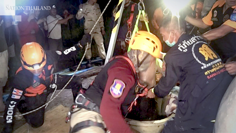 Rescue staff in Chaiyaphum showed up late on Monday (September 21) to pull the bodies of three men – a father and two sons – up from the bottom of an artesian well.