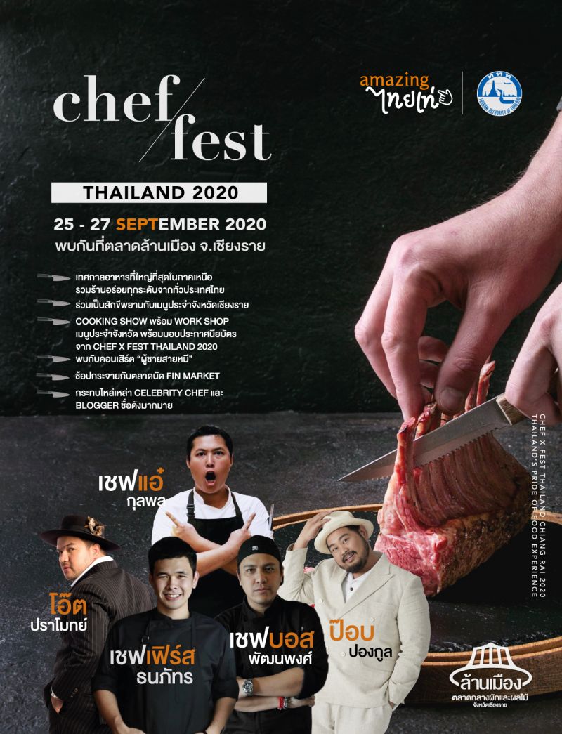 มาร่วมเปิดประสบการณ์อาหารสุดสร้างสรรค์กับเทศกาลอาหารที่ใหญ่ที่สุดในภาคเหนือไปด้วยกัน Chef/Fest Thailand 2020 ในวันที่ 25-27 กันยายน 2563 ณ ตลาดล้านเมือง จ.เชียงราย ห้ามพลาดกิจกรรมดีดีแบบนี้แค่ 3 วันเท่านั้น สนับสนุนการจัดงานโดย ททท. การท่องเที่ยวแห่งประเทศไทย สอบถามรายละเอียดเพิ่มเติมได้ที่https://www.facebook.com/cheffestthailand/