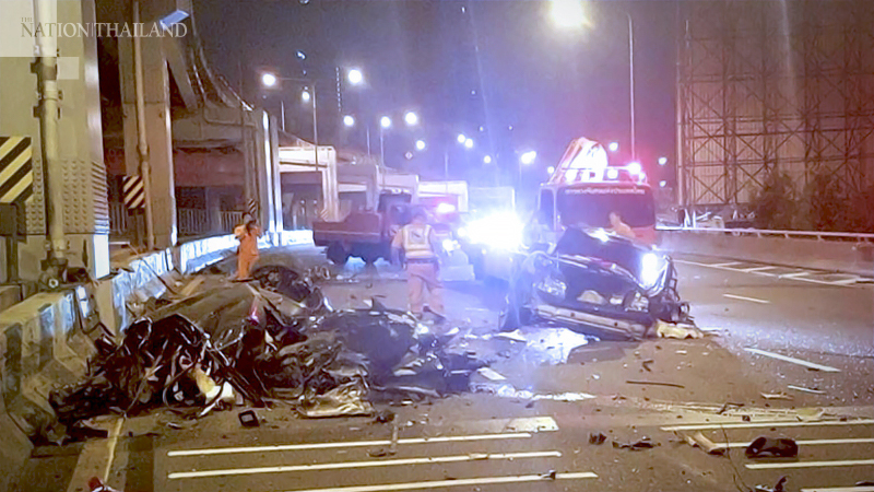 On being notified at 3am, police, paramedic teams from King Chulalongkorn Memorial Hospital and rescue volunteers dashed to the accident scene on Chalerm Maha Nakhon Expressway.
