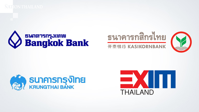 The four Thai banks named in the report are: Bangkok Bank, Kasikornbank, and two state-owed banks — Krungthai Bank and Export-Import Bank of Thailand.