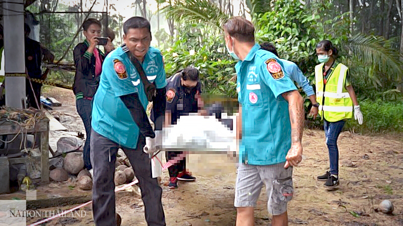 The body of Jaruek Burapha, 43, was found outside their house with five gunshot wounds in the back and one in the abdomen.