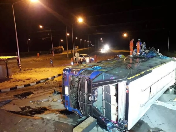 Preliminary police investigation revealed that the bus was carrying a group of village health volunteers from Roi Et province back home from their trip to Pattaya, Chonburi province.