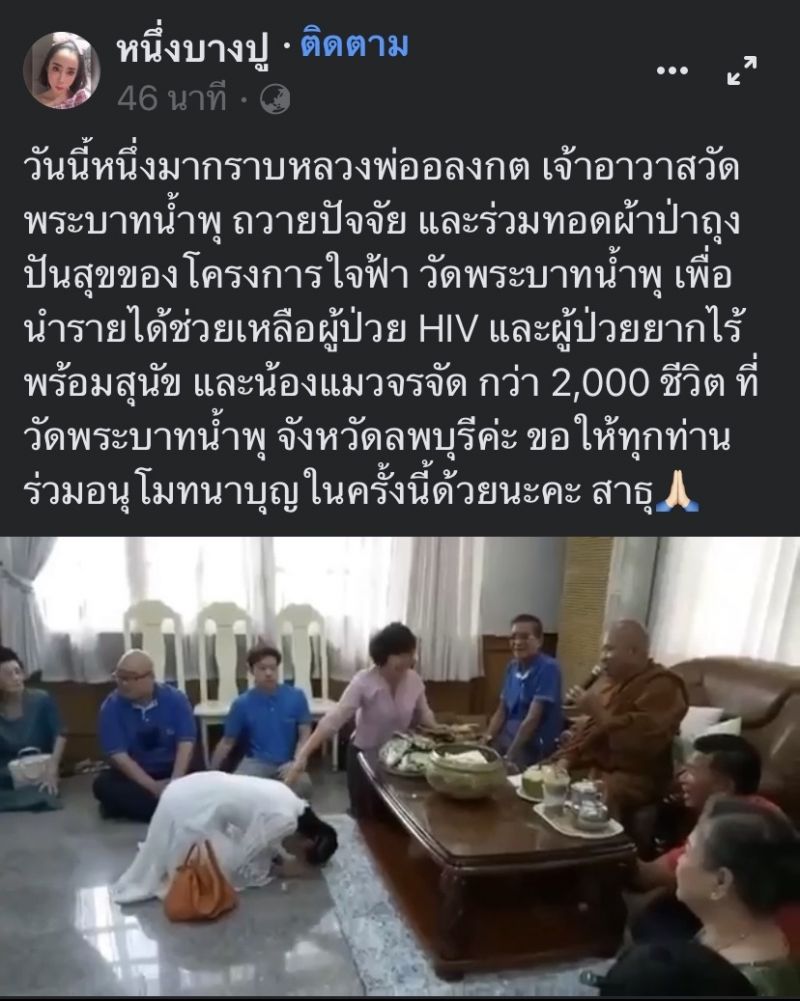 ‘หนึ่ง บางปู’ก่อนบ่ายฯ นางฟ้าประจำวัด ขายของออนไลน์หาเงิน ทุ่มช่วยผู้ป่วย HIV วัดพระบาทน้ำพุ