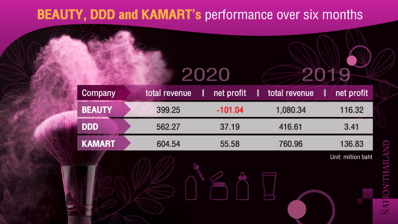 KAMART’s net profit over six months was Bt55.58 million, down 59.4 per cent year on year, while DDD’s net profit was Bt37.19 billion after facing losses for four consecutive quarters.