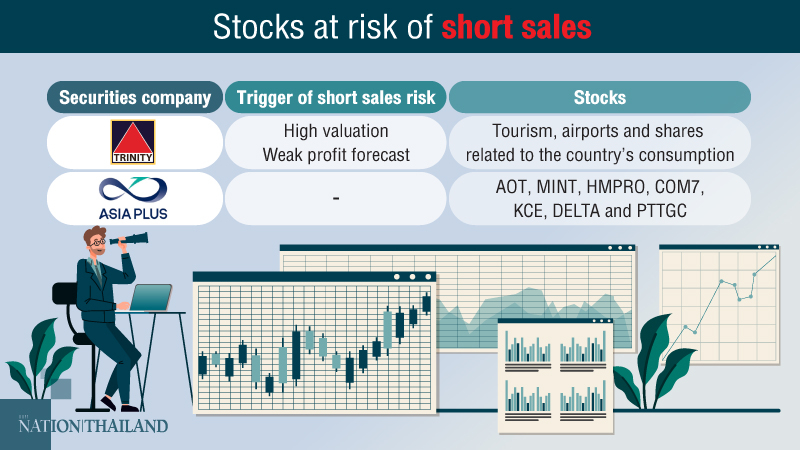 The value of short sales is expected to hit Bt1 billion daily after the Stock Exchange of Thailand (SET)’s uptick rule expires on Thursday (October 1). Stocks in businesses related to tourism and consumption will be vulnerable to short-selling due to their high valuation and weak profit forecasts.