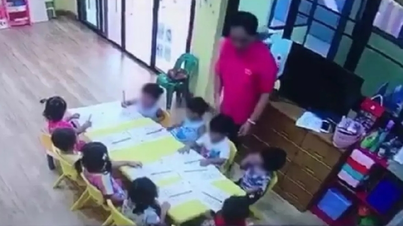 On Wednesday, Manoon also posted on his Facebook page CCTV footage from the school that showed the teacher pinching the boy’s hand while he was writing, causing him to cry loudly. In the post, Manoon demanded justice.