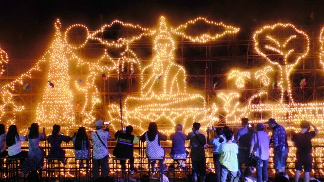 The boats are decorated with around 5,000 to 10,000 candles, depicting religion-related images, chief among which is the Buddha.
