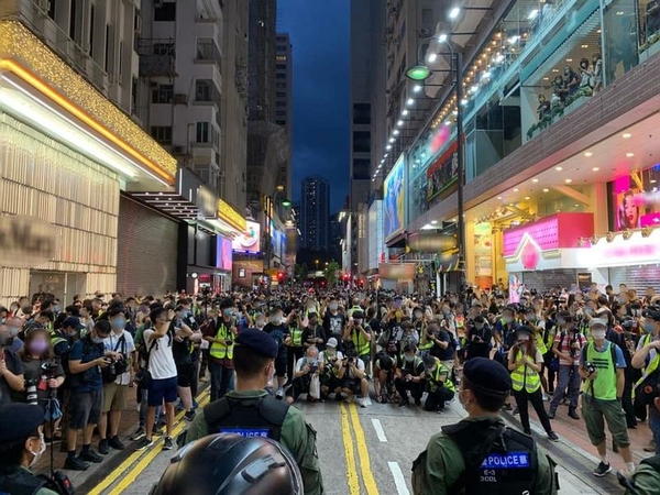 Large crowds gathered on Great George Street in Causeway Bay from 2 pm and some of them chanted the slogan “Liberate Hong Kong, revolution of our times”, allegedly inciting or abetting others to commit secession, police announced on their official Facebook page.