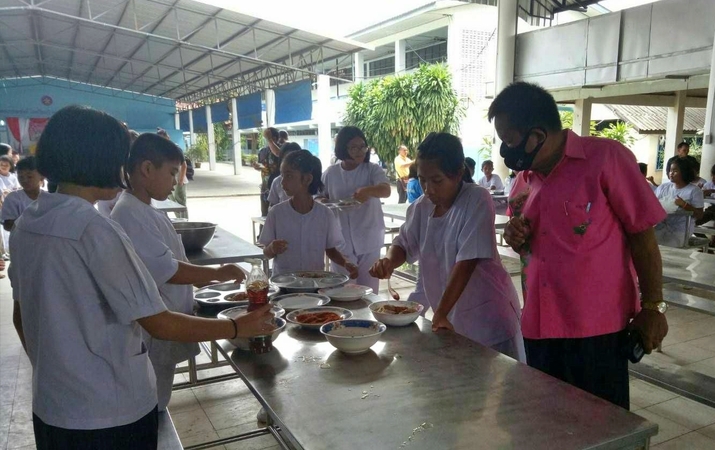 Si Racha district officials visited Bankaokansong School in Chonburi province on Friday after photos of a school student eating his lunch with his bare hands went viral.