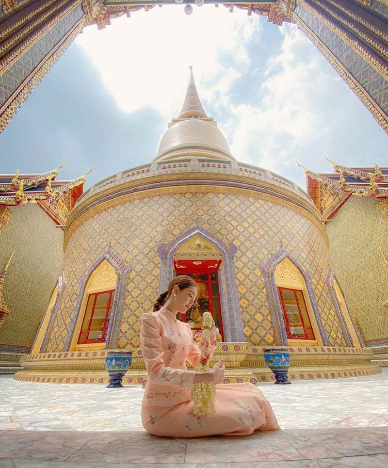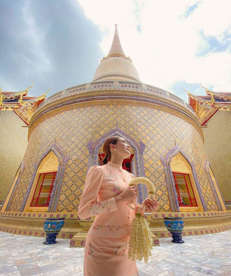 4 ต.ค.63 มักมีภาพแซ่บๆ ให้แฟนๆ ได้กดไลค์กันอยู่บ่อยๆ สำหรับ นักแสดงสาวสวย เกรซ กาญจน์เกล้า แต่ล่าสุดเจ้าตัวก็ขอเบรกลุคสุดแซ่บ สวมชุดไทยจิตรลดาสุดหวาน มาใส่ไปวัด นั่งพับดอกบัวถวายพระ ณ วัดราชบพิธสถิตมหาสีมารามราชวรวิหาร เรียกว่างดงาม โพสท่าถ่ายภาพสวยๆ ทำเอาแฟนๆ ต่างรัวกดไลค์เลยทีเดียว