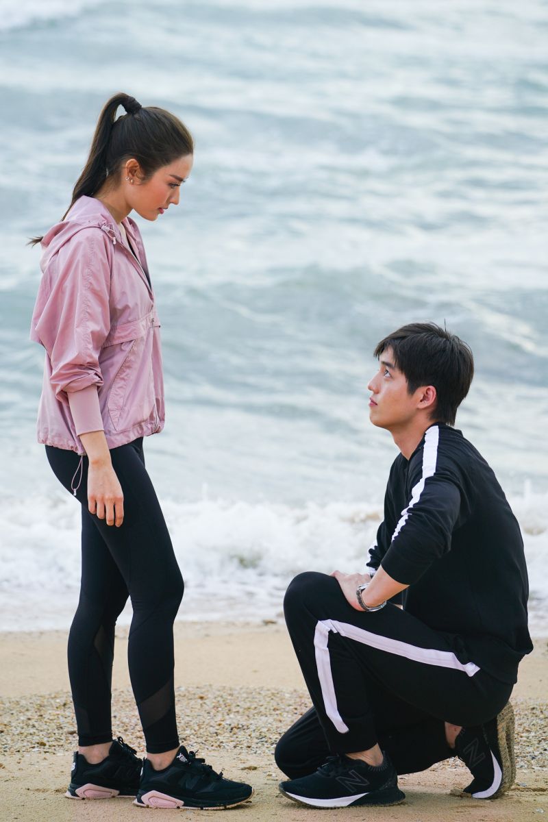 ฉากนี้เป็นฉากที่ต่อเห็นแอฟออกมาวิ่งออกกำลังกายอยู่ที่ริมชายหาดคนเดียว และเห็นว่าเชือกรองเท้าของแอฟหลุด ต่อกลัวแอฟจะสะดุดล้ม เลยรีบวิ่งตามมาบอกด้วยความเป็นห่วงงานนี้จะให้มาบอกว่าเชือกรองเท้าหลุดเฉยๆ ก็ดูจะธรรมดาไป ผู้กำกับ สันต์ ศรีแก้วหล่อจึงเพิ่มดีกรีความฟิน จัดโมเม้นท์หวานๆ ขยี้ใจแฟนๆโดยการให้ต่อทำเซอร์ไพรส์แอฟด้วยการก้มลงไปผูกเชือกร้องเท้าที่หลุดให้ซึ่งแค่ลองซักซ้อม ก็ทำเอาทีมงานออกอาการเคลิ้มตามกันไปทั้งกอง ส่งเสียงร้องกรี๊ดกันลั่น เมื่อซ้อมกันพอหอมปากหอมคอผู้กำกับจึงสั่งถ่ายจริงทันที เริ่มที่ ต่อรีบวิ่งตามแอฟมาที่ชายหาด เพราะต้องการจะเตือนเรื่องเชือกรองเท้าที่หลุด เมื่อทั้งคู่ได้เจอหน้ากัน แทนที่ต่อจะบอก แต่กลับยืนนิ่งเอาแต่มองหน้าหน้าแอฟแล้วยิ้มเขินออกมา แอฟเห็นอาการต่อก็ขำปนเอ็นดู เลยแกล้งถามต่อว่าเป็นอะไร ต่อเลยเดินตรงเข้าไปใกล้ๆ แอฟ จากนั้นต่อก็นั่งคุกเข่าตรงหน้าแอฟ ทำเอาแอฟตกใจจะเอี้ยวตัวหลบจังหวะนั้นต่อก็เอื้อมมือเพื่อไปผูกเชือกรองเท้าให้แอฟอย่างอ่อนโยน พร้อมกับพูดจาเตือนให้แอฟระวังด้วยความเป็นห่วง นาทีนี้แอฟถึงกับใจเต้นรัว จ้องตาต่อไม่กระพริบ และเพราะเห็นถึงความอ่อนโยนของต่อ สักพักแอฟเผลอหลุดยิ้มออกมาไม่รู้ตัว