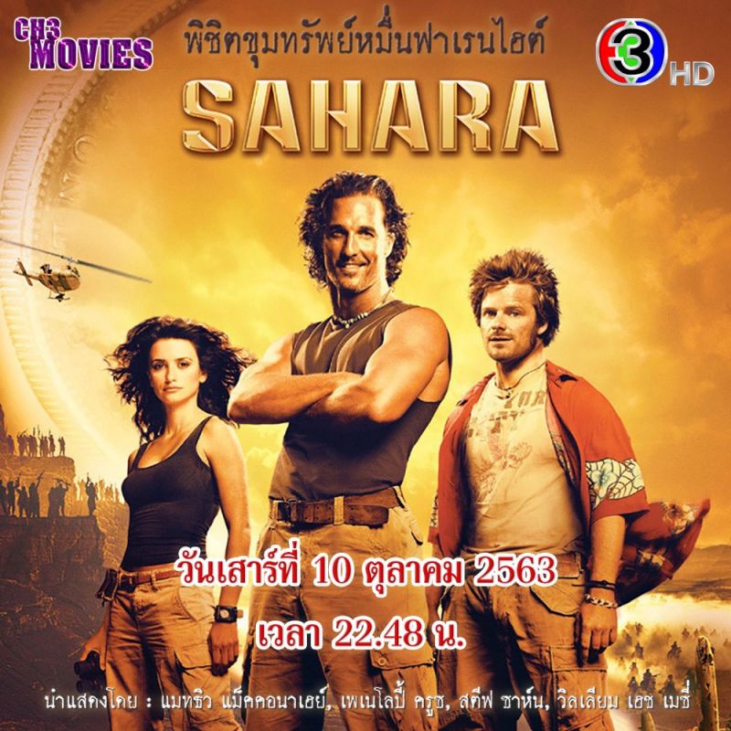 เรียกได้ว่าแฟน ๆ คนไหนชอบภาพยนตร์ผจญภัยปนความบู๊ ห้ามพลาด “พิชิตขุมทรัพย์หมื่นฟาเรนไฮต์ (Sahara)”ในช่วง “แชนแนลทรีมูฟวี่ส์” วันเสาร์ที่ 10 ตุลาคม2563 เวลา 22.58 – 01.28 น. ทางช่อง 3 กด 33