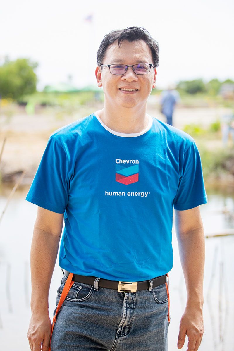 ด้าน นายอาทิตย์ กริชพิพรรธผู้จัดการใหญ่ฝ่ายสนับสนุนธุรกิจ บริษัท เชฟรอนประเทศไทยสำรวจและผลิต จำกัด กล่าวเพิ่มเติมว่า “กิจกรรมเอามื้อสามัคคีในครั้งนี้มีผู้เข้าร่วมกิจกรรมเกือบ 400 คน จากสมาชิกเครือข่ายมูลนิธิกสิกรรมธรรมชาติ ผู้สมัครร่วมกิจกรรมทางเฟซบุ๊คโครงการตามรอยพ่อฯ และพนักงานของเชฟรอน เพื่อร่วมกันสร้างพื้นที่ต้นแบบ โคก หนอง นาขาวังแบบกสิกรรมธรรมชาติ บนพื้นที่ของนายชัชวาล เกษมสุข ที่ ต.คลองบ้านโพธิ์ อ.บ้านโพธิ์ จ.ฉะเชิงเทรา กิจกรรมที่ทำ ได้แก่ ขุดคลองไส้ไก่ ปลูกแฝก ปลูกป่า 3 อย่าง ประโยชน์ 4 อย่าง เพาะผัก ห่มดินแห้งชามน้ำชาม ปล่อยพันธุ์ปลา เป็นต้น โดยมีวิทยากรจากมูลนิธิกสิกรรมธรรมชาติ รวมถึง ดร.วิวัฒน์ ศัลยกำธร(อ.ยักษ์) สาธิตและให้ความรู้แก่ผู้เข้าร่วมกิจกรรม ซึ่งคาดหวังว่ากิจกรรมการสร้างพื้นที่ต้นแบบ โคก หนอง นาขาวัง แบบกสิกรรมธรรมชาติแห่งแรกใน อ.บ้านโพธิ์นี้ จะเป็นแหล่งเรียนรู้ให้กับเกษตรกรในพื้นที่ ในการนำภูมิปัญญาท้องถิ่น รวมถึงหลักปรัชญาเศรษฐกิจพอเพียงและองค์ความรู้ศาสตร์พระราชามาปรับใช้ เพื่อยกระดับคุณภาพชีวิตอย่างยั่งยืนต่อไป”