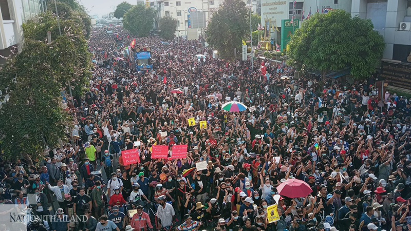 At 8.40am, protest leader Anon Numpa cautioned protesters that police could step in to make arrests, as they did on Tuesday. He asked the rallyists to gather peacefully and advised them to immediately inform guards if they noticed or suspected anyone trying to instigate violence that would discredit the pro-democracy camp.
