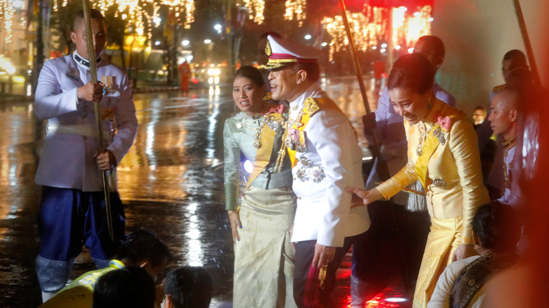 His Majesty King Maha Vajiralongkorn and Her Majesty Queen Suthida performed a religious ceremony to make merit on the anniversary of the passing of late King Bhumibol Adulyadej the Great on Tuesday at Amarin Winitchai Throne Hall at the Grand Palace.