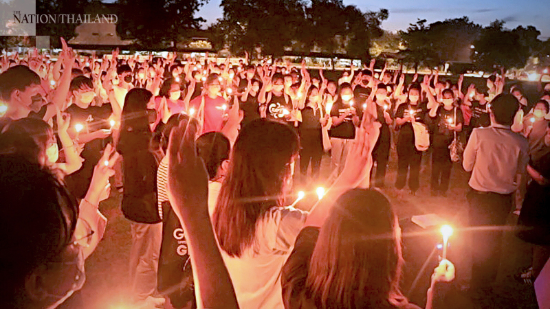 More than 200 students of Phitsanulok’s Naresuan University held a gathering on Wednesday evening to remember the people who lost their lives in the October 14, 1973 uprising as well as to show support for the pro-democracy protest in Bangkok.
