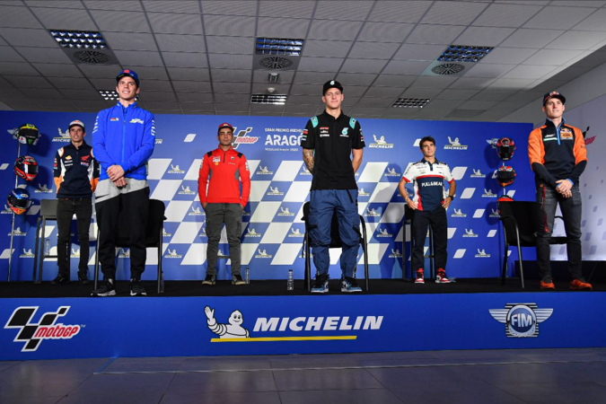 Ahead of the Gran Premio Michelin® de Aragon, Fabio Quartararo (Petronas Yamaha SRT) was joined by the man still just behind him, Joan Mir (Team Suzuki Ecstar), as well as Le Mans podium finisher and home hero Pol Espargaro (Red Bull KTM Factory Racing), French GP winner Danilo Petrucci (Ducati Team), first time rostrum finisher Alex Marquez (Repsol Honda Team) and Moto3™ Championship leader Albert Arenas (Solunion Aspar Team Moto3), newly signed up for Moto2™ next year, to talk about the race weekend ahead.