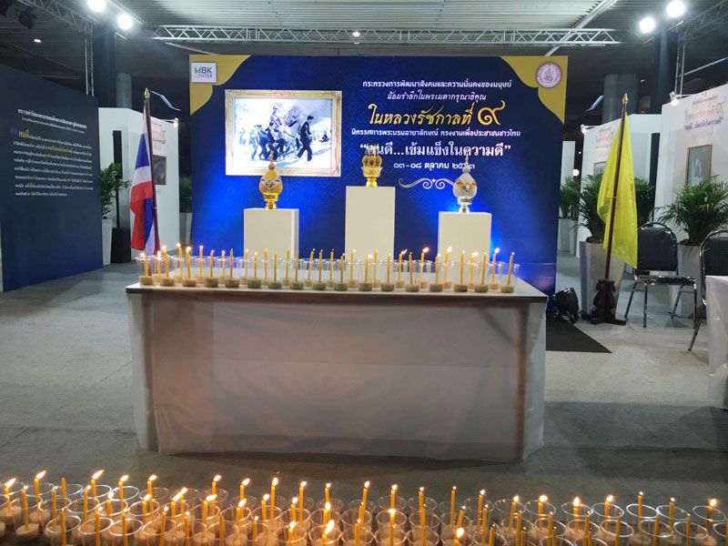 งานนิทรรศการนี้ใช้ชื่อว่า “คนดี เข้มแข็งในความดี” จัดที่ศูนย์การค้า เอ็ม บี เค เซ็นเตอร์ จนถึงวันอาทิตย์ที่ 18 ต.ค.นี้ (ประตูโตคิว) โดยนายจุติ ไกรฤกษ์ รัฐมนตรีว่าการกระทรวงการพัฒนาสังคมและความมั่นคงของมนุษย์ (พม.) กล่าวเชิญชวนพี่น้องประชาชนให้มาชมพระบรมฉายาลักษณ์ ที่ในหลวง ร.9 เสด็จไปทั่วประเทศเพื่อพัฒนาคนไทยให้ “อยู่ดีอยู่ดีกินดี “อย่างแท้จริง และเป็นการเสด็จฯ แม้พื้นที่ทุรกันดาร งานนี้มีเหรียญ 2 รัชกาล แจกเป็นที่ระลึก (จำนวนจำกัด) โดยจะเริ่มแจกเวลา 13.00 น.ด้วย