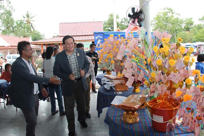 ทั้งนี้ ในงานพิธีทอดกฐินได้มีการแสดงต่าง ๆมากมาย ตั้งแต่การรำมโนราห์พื้นบ้านที่สวยงามตระการตา การแสดงกลองยาว การแสดงวงโยธวาทิต จากโรงเรียนชะอวดวิทยาคาร ซึ่งเป็นโรงเรียนแชมป์โยธวาทิตระดับภาคใต้ การออกบูธสินค้าโอทอป โดยการออกบูธสินค้าโอทอปมีทั้งในแนวเศรษฐกิจเศรษฐกิจพอเพียง ของพระบาทสมเด็จ พระบรมชนกาธิเบศร มหาภูมิพลอดุลยเดช มหาราช บรมนาถบพิตร บูธผ้ายกเมืองนคร ซึ่ง สมเด็จพระนางเจ้าสิริกิติ์ พระบรมราชินีนาถ พระบรมราชชนนีพระพันปีหลวง เคยเสด็จมาเมื่อปี 2527 มาแนะนำและนำเข้าโครงการเพื่อเปิด ศูนย์ศิลปาชีพบ้านตรอกแค ที่ตำบลขอนหาดนี้ และเมื่อปี 2552 สมเด็จพระกนิษฐาธิราชเจ้า กรมสมเด็จพระเทพรัตนราชสุดา เจ้าฟ้ามหาจักรีสิริธรฯสยามบรมราชกุมารี ทรงเสด็จมาเยี่ยมและทรงงานเพื่อส่งเสริมการทำอาชีพ ตามแนวหลักเศรษฐกิจพอเพียง ซึ่งเป็นตำบลต้นแบบของจังหวัดนครศรีธรรมราช