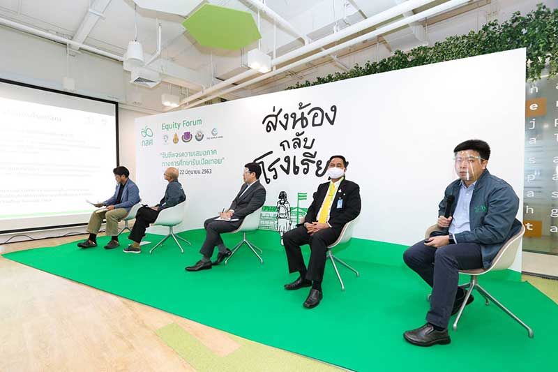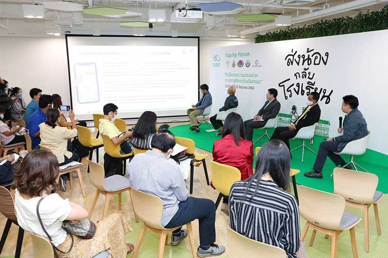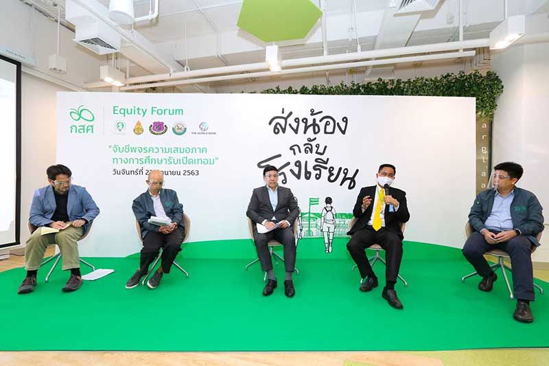 วันที่ 22 มิถุนายน 2563 สถาบันวิจัยเพื่อความเสมอภาคทางการศึกษา กองทุนเพื่อความเสมอภาคทางการศึกษา(กสศ.) ร่วมกับ สำนักงานคณะกรรมการการศึกษาขั้นพื้นฐาน(สพฐ.) และธนาคารโลกประจำสำนักงานประเทศไทย จัดเวทีเสวนา “จับชีพจรความเสมอภาครับเปิดเทอม สู้วิกฤตให้น้องได้กลับโรงเรียน”