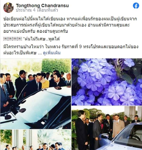 วันที่ 3 กรกฎาคม 2563 ศาสตราจารย์พิเศษธงทอง จันทรางศุ อดีตปลัดสำนักนายกรัฐมนตรี ผู้เชี่ยวชาญด้านประวัติศาสตร์ โพสต์ข้อความผ่านเฟซบุ๊กว่า ข้อเขียนต่อไปนี้ผมไม่ได้เขียนเอง หากแต่เพื่อนรักของผมเป็นผู้เขียนจากประสบการณ์ตรงที่ผู้เขียนได้พบมาด้วยตัวเอง อ่านแล้วมีความสุขและอยากแบ่งปันครับ ลองอ่านดูนะครับ
