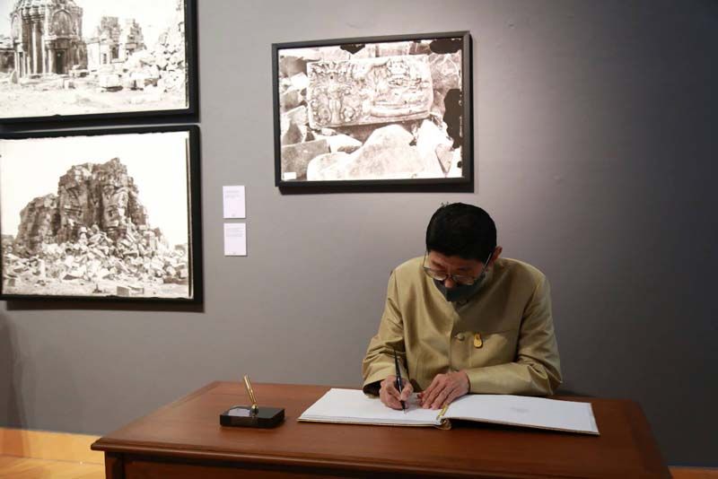 จากนั้น นายอิทธิพล คุณปลื้ม รัฐมนตรีว่าการกระทรวงวัฒนธรรม กล่าวรายงานการจัดนิทรรศการ