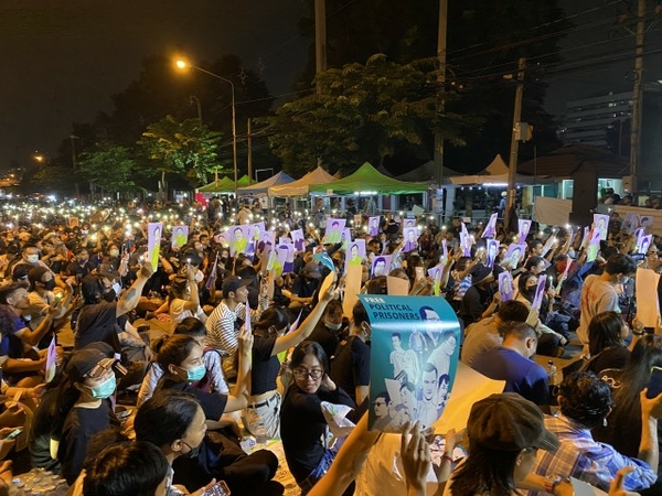 Pro-democracy protesters of the Ratsadon (The People) group have gathered in front of Bangkok Remand Prison in Chatuchak district since Friday afternoon, urging the authorities to release protest leaders who had been arrested and held at the prison.