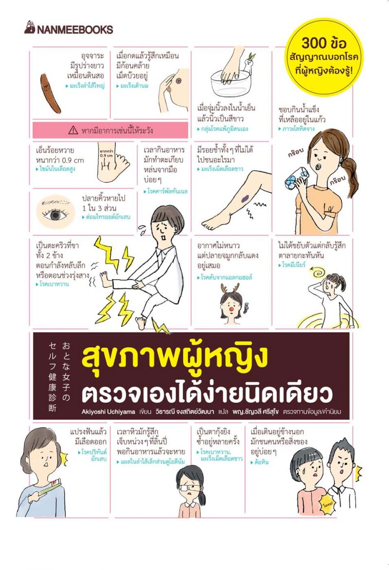 การปรารถนาที่จะมีสุขภาพที่ดีเพียงอย่างเดียวไม่ก่อให้เกิดความเปลี่ยนแปลงใดๆ ต้องเริ่มลงมือจากทำเรื่องง่ายๆ ที่สามารถทำได้ เลือกเคล็ดลับที่ตัวเองชอบจากทั้งในหนังสือ “สุขภาพผู้หญิง ตรวจเองได้ง่ายนิดเดียว” และ “รู้ทันปัญหา สุขภาพผู้หญิง” นำมาปรับใช้ในชีวิตประจำวันแล้วลองสังเกตความเปลี่ยนแปลงของร่างกายและจิตใจดู อาจได้พบตัวเองในแบบใหม่ที่ไม่เคยรู้มาก่อน สามารถสั่งซื้อได้แล้วที่โทร.02-662-3000 กด 0 หรือ http://www.nanmeebooks.com, http://www.facebook.com/nanmeebooksfan ทั้งนี้ สามารถติดตามข่าวสารและหนังสือน่าสนใจอีกมากมายเพียง Add Line @nanmeebooks และ @nmbadult