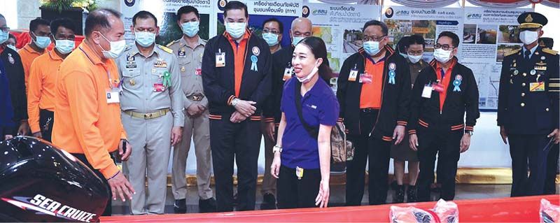 พระราชทานฉายพระรูปร่วมกับคณะกรรมการมูลนิธิอาสาเพื่อนพึ่ง (ภาฯ) ยามยาก สภากาชาดไทย ผู้แทนเครือข่ายเตือนภัยพิบัติชุมชนเพื่อนพึ่ง (ภาฯ) คณะผู้บริหารและเจ้าหน้าที่ศูนย์อำนวยการบริหารจังหวัดชายแดนภาคใต้