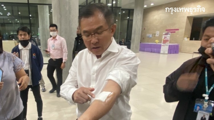 Parliament President Chuan Leekpai called on medical staff to apply first aid, before Visan was taken to hospital for treatment.