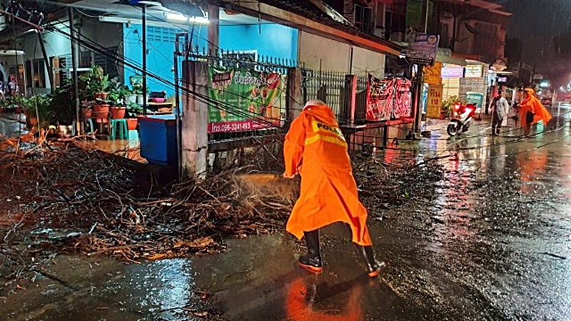 Ubon Ratchathani municipality rescuers and officials had to clear the road of the tree and branches before traffic could move freely again.