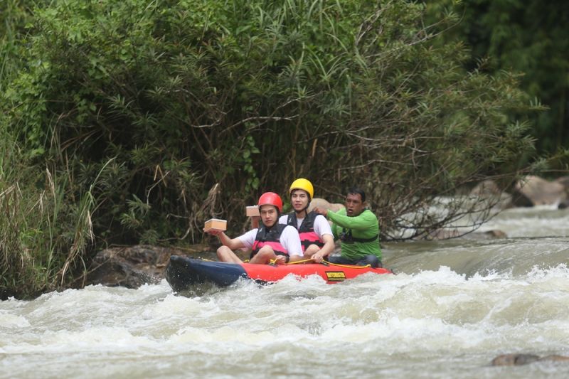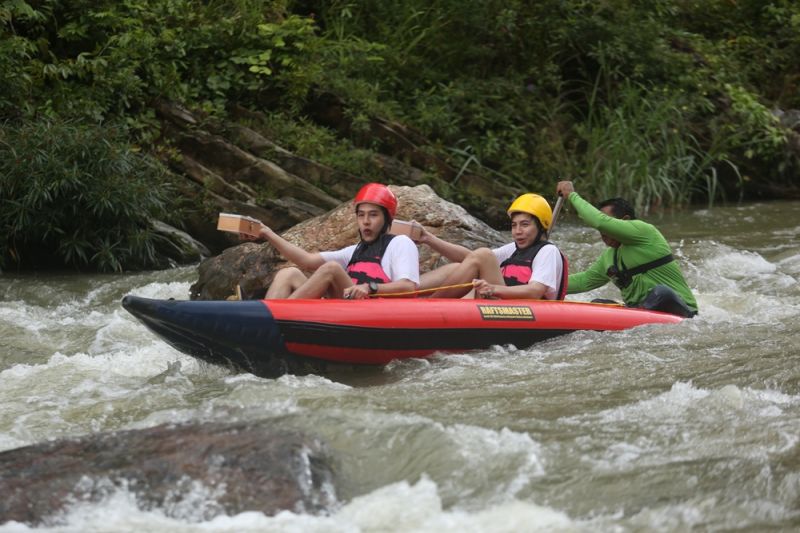ซึ่งก่อนลงเรือหนุ่มๆ ก็ได้วางแผนกันอย่างรัดกุม พร้อมแบ่งทีมนั่งเรือเพื่อเซฟไข่กันเต็มที่ โดยทอยได้เลือกนั่งเรือคู่กับเฟิร์ส ส่วนเฟยนั่งคู่กับกันสมาย เรียกว่าเพียงแค่ออกสตาร์ทหนุ่มๆ ก็เจอกับความท้าทายมากมายโดยเฉพาะกระแสน้ำที่พาเรือยางลัดเลาะไปตามโขดหินน้อยใหญ่สร้างความตื่นเต้นให้กับหนุ่มๆ ตลอดเส้นทาง สุดท้ายใครจะเป็นผู้ชนะมีทักษะในการประคองไข่ได้อย่างยอดเยี่ยมไปลุ้นกัน หลังจากเหน็ดเหนื่อยกับการล่องแก่งก็ได้เวลาผ่อนคลายด้วยกิจกรรมบำบัดความเมื่อยล้าที่หนุ่มเฟยขอแนะนำเพื่อนๆ ด้วยการพาไป ลงอ่างแช่บ่อน้ำพุร้อนกรุงชิงซึ่งเป็นบ่อน้ำพุร้อนธรรมชาติที่มีบริการแบบครบวงจรบอกเลยว่าสร้างความฟินปิดทริปไปแบบคูลๆ สไตล์แก๊งโตแล้ว