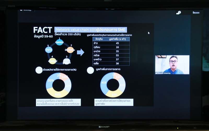 “การเพิ่มส่วนแบ่งรายได้ เกษตรกรต้องเปลี่ยนบทบาท ลดข้อต่อในพื้นที่ โดยทำการเกษตรแบบสมาร์ทฟาร์ม และทำหน้าที่เป็นผู้รวบรวมผลิตภัณฑ์ที่มี Value Creation สูง มีความโดดเด่นของพื้นที่นั้น หรือเกิดจากภูมิปัญญาหรือวัฒนธรรมของพื้นถิ่นนั้นๆ ซึ่งเราเรียกว่าเป็นสมบัติเก่า ซึ่งหากเกษตรกรปรับตัวเป็นล้งในพื้นที่ เงินจะเข้าเกษตรกรเต็ม 100% และหากเราผลักดันเข้าสู่ระบบการทำโรงสี รวมตัวกันเป็นกลุ่ม หรือ Network Value Chain เพื่อสร้างวงจรความร่วมมือหนุนเสริมกัน เพิ่มการวนรอบของเงินในพื้นที่ให้นานขึ้น มากขึ้นหรือเข้าถึงตลาดที่แท้จริง สัดส่วนแบ่งของเกษตรกรจะเพิ่มขึ้นถึง 40% จะก่อให้เกิดแฟร์เทรดเพิ่มขึ้นด้วย ซึ่งการจะปรับให้เกิดสิ่งที่กล่าวมาทั้งหมดข้างต้น อววน. มีบทบาทสำคัญมากในการใส่องค์ความรู้ เพิ่มทักษะ และนำเทคโนโลยีเข้าไปช่วย” ดร.บัณฑิต กล่าว