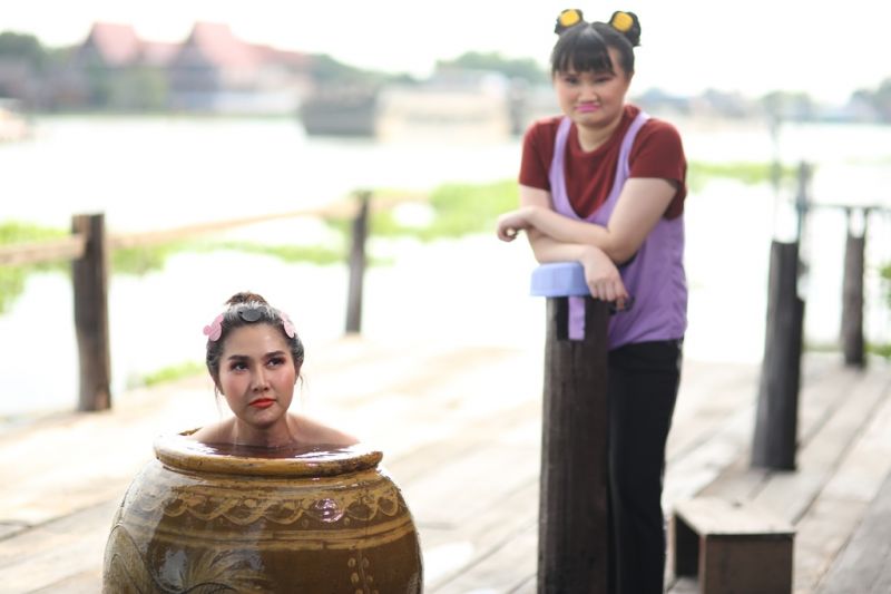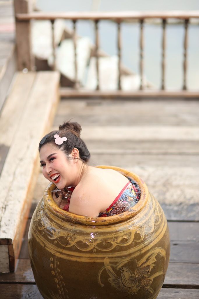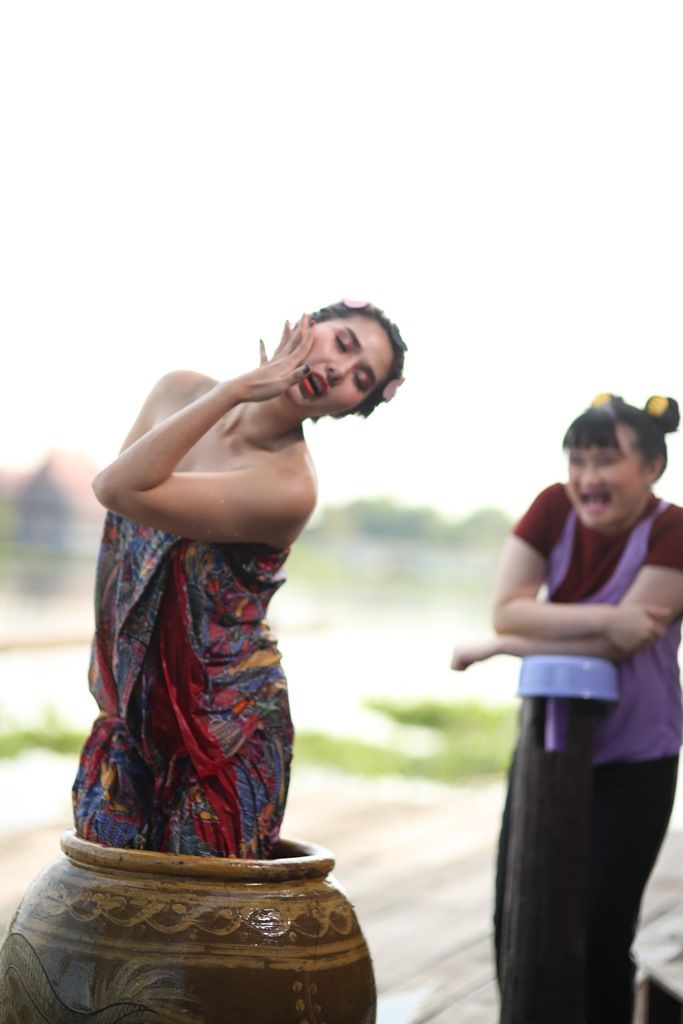 ฉากนี้มีนักแสดงร่วมฉากอย่าง “เจิน” ลูกน้องคนสนิทของ เจ๊บอลลูน ที่รับบทโดย ธัญญารัตนมาลากุลโดยก่อนถ่ายทำ ผู้กำกับฯ ให้สองนักแสดงมาต่อบทกันซะก่อน จากนั้นก็ลองให้ สาวเอี๊ยม ลงไปในโอ่ง และเมื่อทุกอย่างพร้อม ผู้กำกับฯ ก็สั่งเคลื่อนกล้อง สาวเอี๊ยมก็ทำการแสดงอย่างเต็มที่ เซ็กซี่ทุกกระบวนท่า ยั่วยวนให้ผู้ชายใหลหลงและเคลิบเคลิ้ม พอผู้กำกับฯ สั่งคัท อารมณ์ฮา…ก็โพล่งออกมาอย่างเต็มเหนี่ยวไปเลยจ้า…!!!!