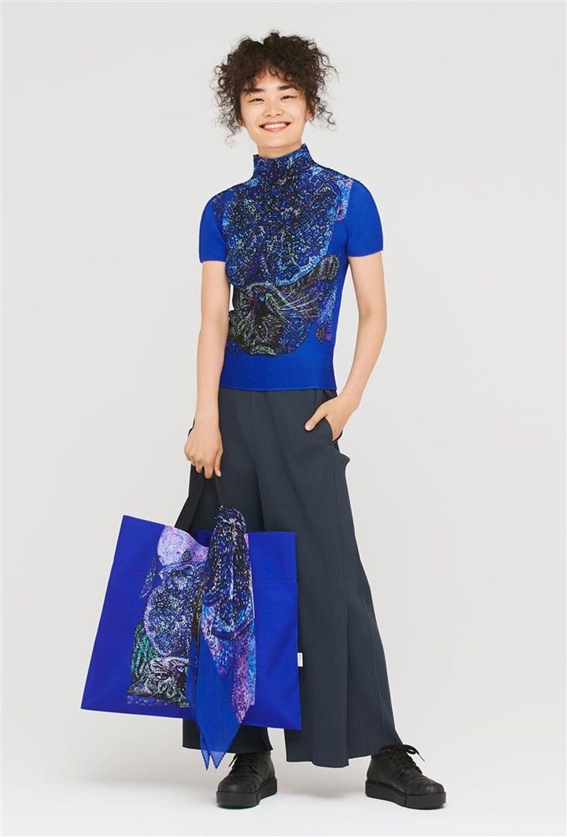 สำหรับคอลเลคชั่นนี้ แบรนด์น้องเล็กของตระกูล อิซเซ่ มิยาเกะ ได้ถ่ายทอดแมวในหลากหลายรูปแบบอย่างสนุกสนาน เช่น แมวที่อยู่ด้านหน้าผลทับทิมขนาดใหญ่และแมวที่กำลังเล่นกับผีเสื้อตกแต่งอยู่บนเสื้อ STRETCH PLEATS กระเป๋าเสื้อกันฝน และร่มทรงสี่เหลี่ยม นอกเหนือจากผลงานเฉดสีแดงและชมพู ซึ่งถ่ายทอดสีสันของผลงานต้นฉบับของศิลปิน ได้อย่างเที่ยงตรงแล้วยังมีเวอร์ชั่นในเฉดสีฟ้าและดำ สำหรับซีรี่ส์ผลทับทิม และเทาสำหรับซีรี่ส์ผีเสื้อ ซึ่งเปิดโอกาสให้ผู้สวมใส่ได้สัมผัสกับประสบการณ์สีสันที่เป็นเอกลักษณ์ตามแบบฉบับของ me ISSEY MIYAKE