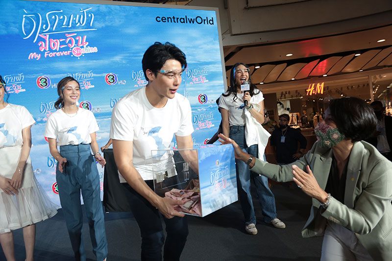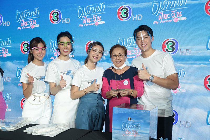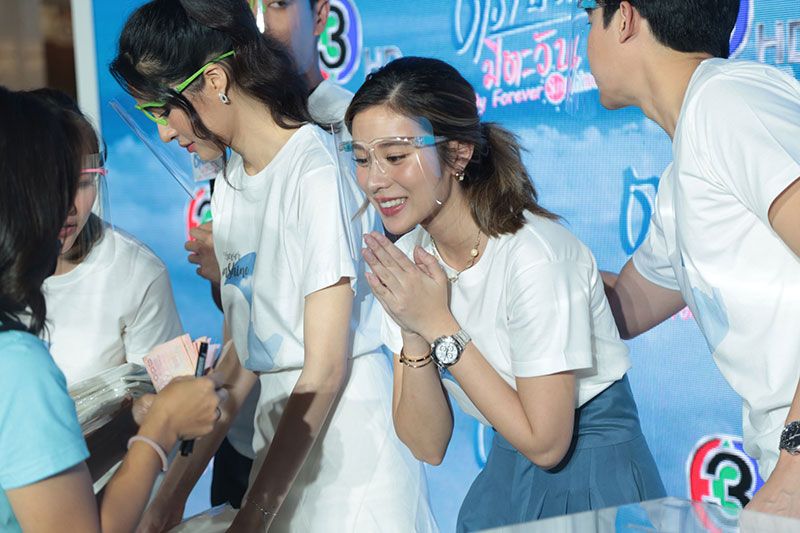 บรรยากาศในงานอบอุ่นไปด้วยแฟนละคร และทีมแฟนคลับของเหล่านักแสดงที่มาให้กำลังใจอย่างล้นหลามโดยมี “นนท์-ธนนท์ จำเริญ” มาร้องเพลง “ช่วยกลับมากวนหัวใจ” งานนี้ทีมนักแสดงรวมพลังแห่งความสดใสอัดแน่นใส่เต็มสูบ ทำเอาคนในงานฟินสุดๆ ยิ่งได้เห็นท่าเต้นประกอบละครสุดน่ารัก ยิ่งทำเอาใจละลาย จังหวะนี้ทีมนักแสดงไม่รอช้า สอนสดฟินสุดทั้งร้องทั้งเต้นให้ดูกันแบบชัดๆ จากนั้นก็ร่วมกันขายเสื้อลิมิเต็ด อิดิชั่น ที่ออกแบบโดย “ดุ๊ก-ภาณุเดช วัฒนสุชาติ” ซึ่งมีเพียง 150 ตัวเท่านั้น ราคาตัวละ 299 บาท รายได้ทั้งหมดสมทบทุนมอบให้กับ มูลนิธิ บ้านครูน้ำเชียงราย โดยครูน้ำและพระเมธาวินทร์ ชยธมฺโมเพื่อเด็กเร่ร่อน เด็กถูกล่วงละเมิดเด็กชาติพันธุ์ เป็นบ้านพักฉุกเฉินของเด็กชายขอบ อ.เชียงแสน จ.เชียงราย ปิดท้ายด้วยการประมูลเสื้อสุดเอ็กซ์คลูซีฟที่มีเพียงตัวเดียวในโลก พร้อมกับลายเซ็นของนักแสดงเป็นที่ระลึก เรียกว่าอิ่มบุญอิ่มใจกันถ้วนหน้า รอชมความสนุกตอนแรกได้วันพฤหัสบดีที่ 19พฤศจิกายนนี้ เวลา 20.15 น. ทาง ช่อง 3 กด 33