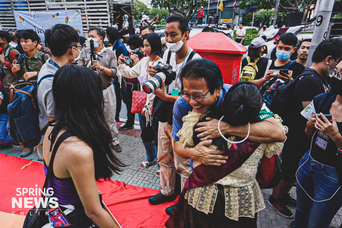 Demonstrators also made their demands for true democracy and better gender equality for Thai female MPs and MPs from the LGBTQ+ community who have not received the respect that they deserve.