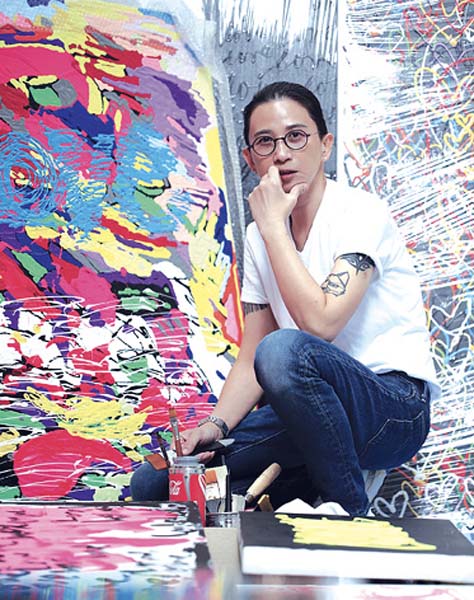 “ศิลปะ ไม่มีผิดหรือถูก ขึ้นอยู่กับการมองเห็นและเข้าใจถึงสิ่งที่อยู่เบื้องหน้าของเรา และด้วยเราไม่ได้เรียนมาทางศิลปะ แต่มีใจรัก จึงไม่รู้จะตั้งต้นอย่างไร และแล้วก็หวนนึกถึงตอนเด็กๆ ได้กินข้าวผัดอเมริกัน ที่เสิร์ฟมาพร้อมขวดบีบซอสมะเขือเทศ เราก็สนุกกับการบีบซอสไปมาบนจานข้าว จึงคิดได้ว่า เอาล่ะ เราจะเริ่มงานเขียนภาพเราด้วยขวดบีบซอสนี่แหละ ทำให้เกิดลวดลายและสีสันตามแต่อารมณ์จะพาไป ดูมีมิติ จึงใช้เทคนิคการบีบสีจากขวดพลาสติกผสมกับการปาดสีแทนพู่กัน เป็นเอกลักษณ์เฉพาะตั้งแต่นั้นมา”