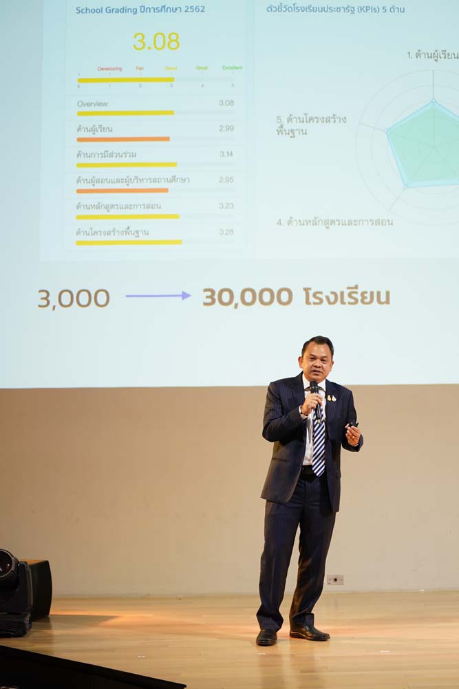 รมว.ศธ. กล่าวต่อว่า ในศตวรรษที่ 21 ข้อเท็จจริงและความรู้ต่าง ๆ เปลี่ยนแปลงไปอย่างรวดเร็ว รวมถึงความต้องการของตลาดงานก็เปลี่ยนไป แต่ระบบการศึกษาไทยไม่เคยเปลี่ยน ในฐานะ รัฐมนตรีว่าการศธ. ที่ได้ลงพื้นที่ทำความเข้าใจกับปัญหาของการศึกษาในสถานที่และบริบทจริงตามสถานศึกษาต่าง ๆ ทั่วประเทศ ทำให้เห็นว่าแท้จริงแล้วทุกคน ทั้งนักเรียนและบุคลากรทางการศึกษามีศักยภาพและมีความพร้อมในการที่จะพัฒนาตัวเอง เพียงแต่ต้องสร้างระบบการศึกษาให้ตอบโจทย์และเป็นเครื่องมือที่จะช่วยให้ทุกคนสามารถประสบความสำเร็จในแบบฉบับของตัวเองจนเป็นทุนมนุษย์ที่เป็นเลิศ สามารถพัฒนาประเทศชาติให้มีความสามารถในการแข่งขันและก้าวหน้าได้ ซึ่งสิ่งที่สำคัญที่สุดคือต้องปรับเปลี่ยนรูปแบบการศึกษาจากเดิมที่ทำให้เด็กไทยมีความรู้และความคิดแบบ Fixed Mindset เป็นการศึกษาที่จะช่วยให้เกิดระบบความคิดแบบ Growth Mindset โดยก้าวข้ามระบบการศึกษา ไปสู่การสร้างระบบนิเวศของการศึกษา หรือ Education Eco-System ซึ่งคุณภาพสำคัญกว่าแค่ปริมาณ