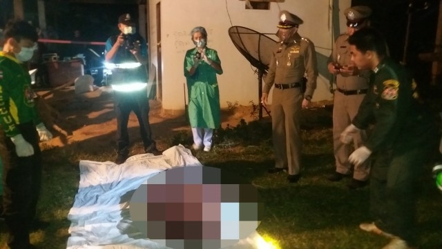 The father, Jamrong Teekawong, 54, had been killed in his house in Tha Pla’s Charim sub-district. The blood-covered body’s position showed that he had been made to kneel, while his face, hands and the back of his head were covered with slash wounds.