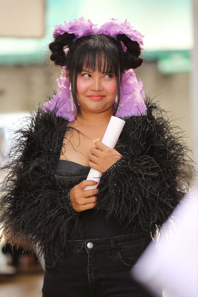 “บทที่ตั๊กแตนได้รับคือเขียว เป็นพี่สาวของนางเอก เป็นสาวโรงงานเขาก็เป็นผู้หญิงที่มั่น ทำอะไรไม่ค่อยอาย เป็นผู้หญิงที่เหมือนจะแต่งตัวเก่งแต่จริงๆ แล้วไม่เก่ง เหมือนจะมิกซ์แอนด์แมทช์แล้วจะเข้ากันแต่มันก็ไม่ก็มีความน่ารักสไตล์ของเขียว เรื่องนี้เป็นหนังเรื่องแรกที่รับเล่นแบบเต็มๆ ที่ผ่านมาก็จะรับเชิญมากกว่า แต่ช่วงนี้คอนเสิร์ตเราบางลงเพราะโควิด เราก็เลยถือโอกาสมาชิมลางรับเต็มเรื่องดูสักเรื่องหนึ่ง ก็ถือว่าเปิดโอกาสให้ตัวเองได้ทดสอบความสามารถในด้านการแสดงด้วย เรื่องนี้ได้รับคำแนะนำเยอะมาก โดยเฉพาะเรื่องโอเวอร์แอ๊กติ้ง คือการแสดงไม่ว่าจะเป็นแววตาหรือท่าทางมันจะโอเวอร์ไปหมด ก็ต้องขอบคุณโอกาสดีๆ ด้วย”