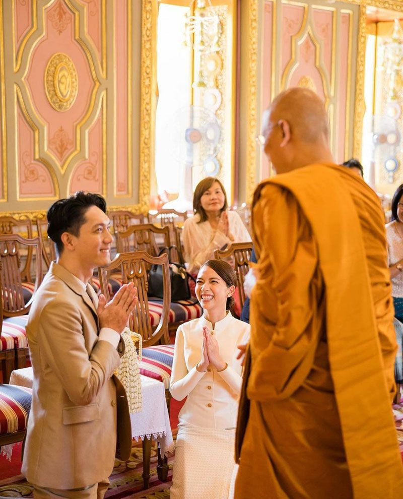 ‘ปั๊บ โปเตโต้-ใบเตย’เข้ารับประทานน้ำพระพุทธมนต์ ก่อนฉลองวิวาห์ 15 พ.ย.นี้