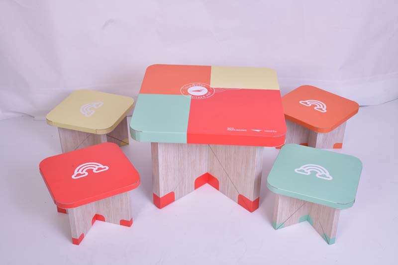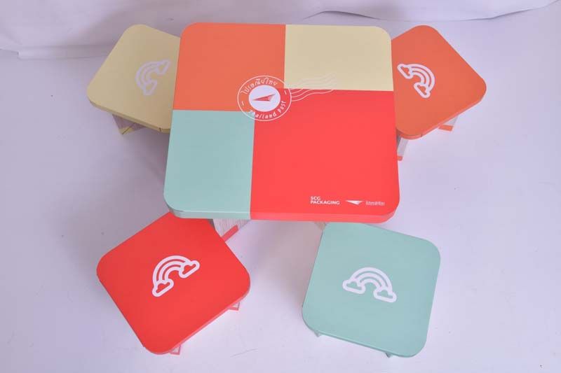 โต๊ะ และ เก้าอี้ รีไซเคิลจากกล่องกระดาษ จะนำไปมอบให้กับน้องๆ โรงเรียนตำรวจตระเวนชายแดน