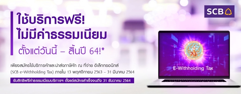Siam Commercial Bank (SCB) is supporting adoption of the Revenue Department’s new e-Withholding Tax system for businesses by waiving its e-Withholding Tax service fees next year for businesses who apply between now and March 31, 2021.