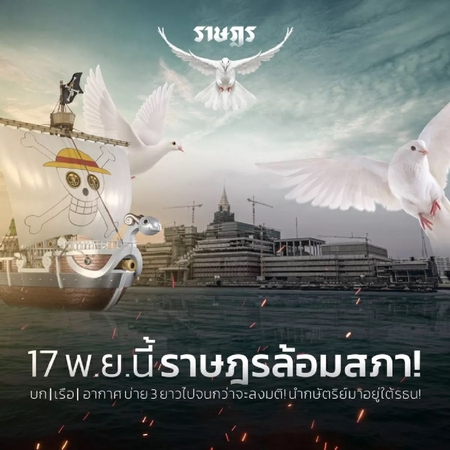 “On November 17, which is the first day of the meeting to consider the draft of the amended constitution submitted by the public, the Ratsadon group will surround Parliament by air, land and water channels,” the group said. “After the draft consideration has been postponed and delayed for more than a month, it finally entered the Parliament process.