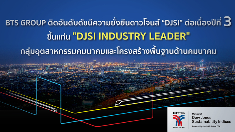 BTS Group has been selected as an index component of the Dow Jones Sustainability Indices (DJSI) 2020 in the DJSI Emerging Markets for the third consecutive year, BTS Group Holdings Pcl (BTS Group) revealed.