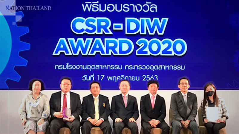 He Ning, chief executive officer of C&G Environmental Protection (Thailand) (pictured second left) recently received the Corporate Social Responsibility – Department of Industrial Works Award (CSR-DIW Award 2020) from the director-general of the Department of Industrial Works.