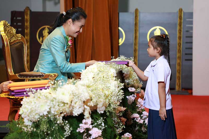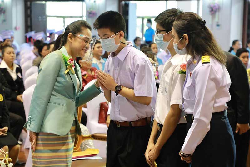 จากนั้น รมช.ศึกษาธิการ ได้มอบโล่ให้กับผู้บริหารโรงเรียนที่มีผลงานดีเด่น จำนวน 51 โรงเรียน พร้อมมอบประกาศให้กับผู้สำเร็จการศึกษาอีก 70 คน โดยเป็นตัวแทนนักเรียนโรงเรียน ๆ ละ 2 ค