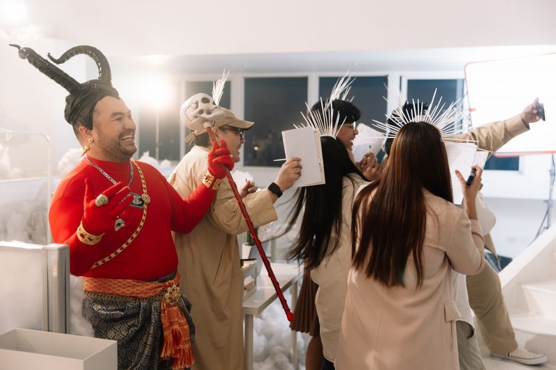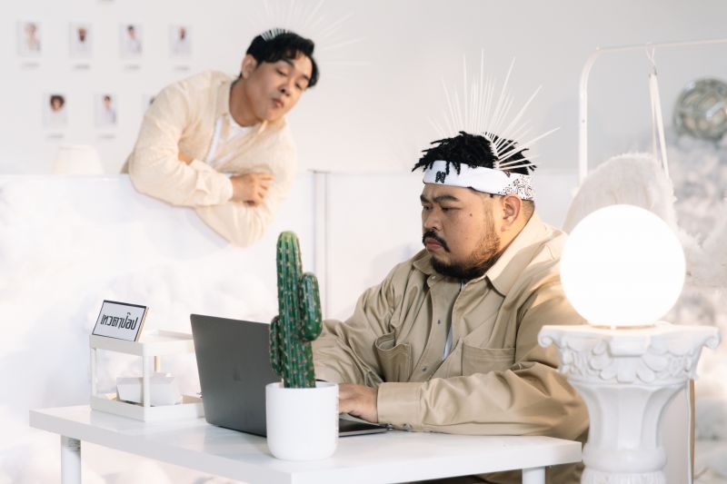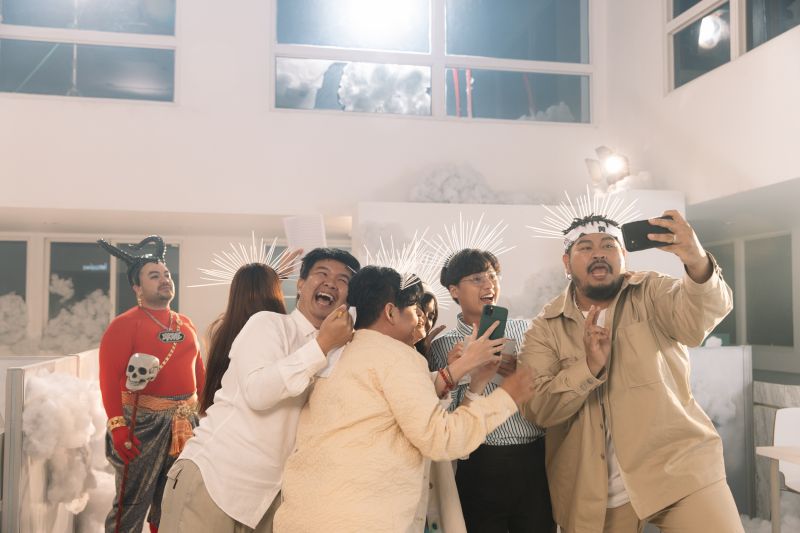 “สำหรับโอ๊ตเนี่ย คือผมไปเล่น MV ฟรีให้มันมาหลายตัวแล้ว (ยิ้มๆ) ให้แต่งตัวอะไรก็ไม่รู้ให้ไปเต้นนู่นนี่นั่น คราวนี้ก็คงได้เวลาไถนาคืนละ มาถึงก็เลยจัดเต็ม เรามีเพลงไม่บ่อย เพราะฉะนั้นครั้งเดียวนี้ผมขออนุญาตทบต้นทบดอกคืนให้หมด ให้ใส่เลคกิ้งแดงเลย ชุดเป็นสุวรรณ เป็นยมทูต ครั้งเดียวคุ้มบอกเลย (หัวเราะ) ส่วนโจ๊กเล่นเป็นเพื่อนเทวดา จริงๆผมชอบคาแร็กเตอร์ที่เค้าเคยเล่นซีรีส์เทวดา มีความเทา มีความดี มีความเลวอยู่ (หัวเราะ) และส่วน MV ได้ผู้กำกับที่รู้ใจอย่าง “หลุยส์-ธชา คงคาเขตร และแมงโต” เนื้อเรื่องจริงๆมันคือเทวดาที่ติดซีรีส์ แล้วซีรีส์ก็คือเรื่องของมนุษย์นี่แหละ เทวดาก็จะคอยมองเราจากข้างบน อยากติดตามแบบนั้นอ่ะฮะ