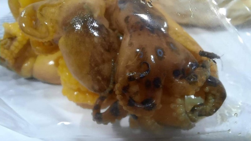 The page posted pictures of the grilled octopus to warn consumers to check the food whether it has a pattern of blue rings on its body before eating.